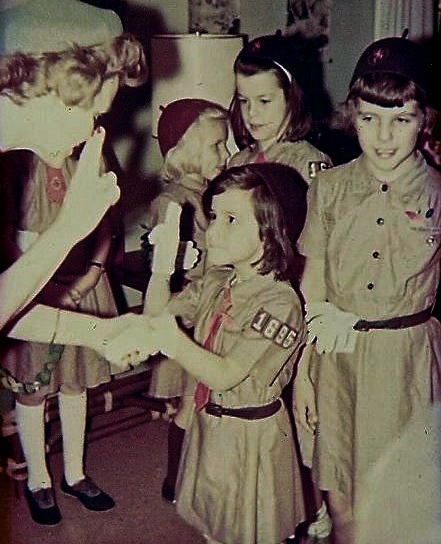 There was something very “Princess Grace” about those gloves and I remember that you had to wear them when taking the pledge or posing for troop pictures. This was the closest I ever got to the “service” and was probably my most favorite uniform (Isaly’s Ice Cream, not withstanding.)